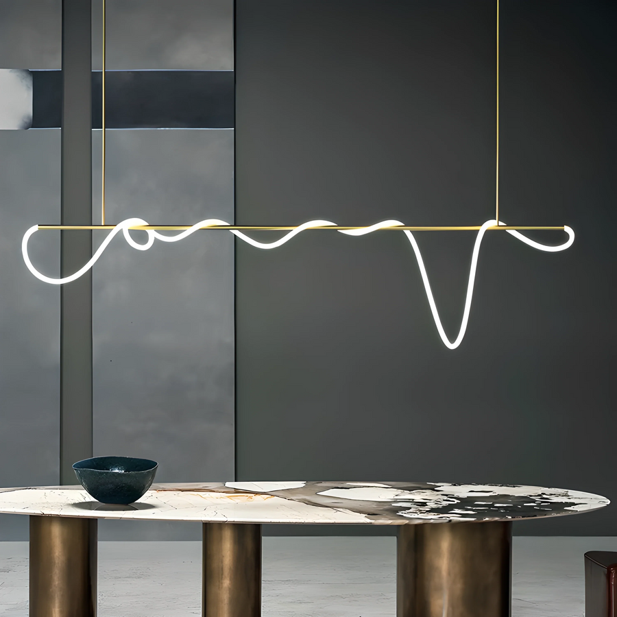 Ljuset följer den mjuka, oregelbundna formen och skapar en behaglig stämning som gör middagar och samtal runt bordet mer inbjudande.
