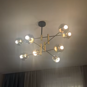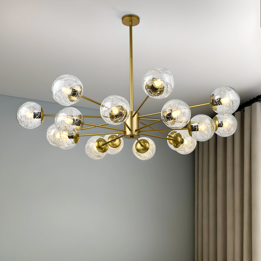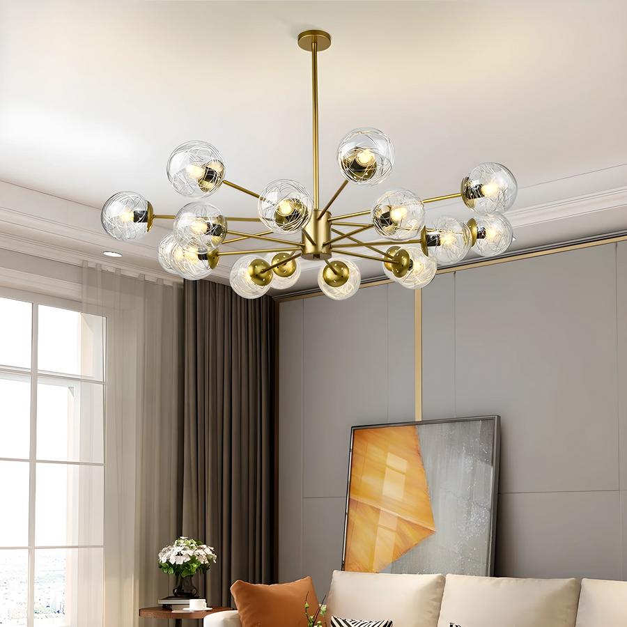 Lyxig konstruktion – Gyllene metallarmar och glaskupor som ger ett exklusivt och modernt intryck.