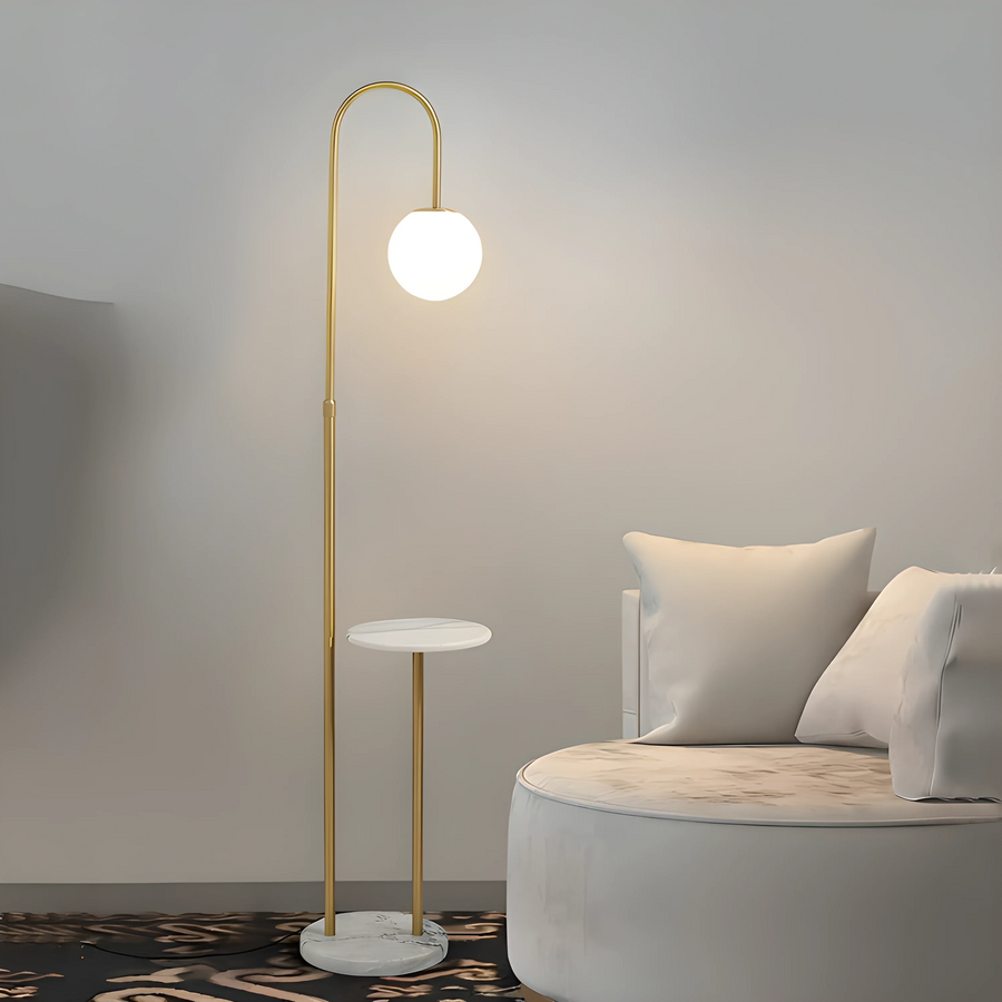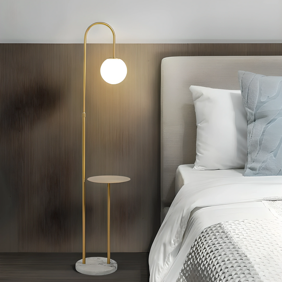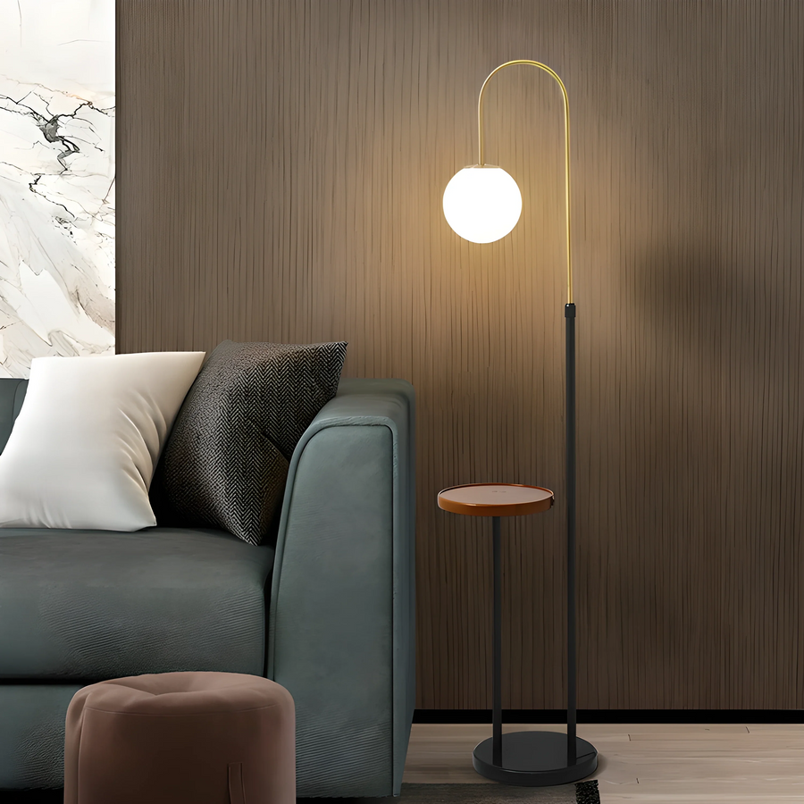 Smart 2-i-1 design – Golvlampa med inbyggt sidobord, perfekt för både belysning och funktion.