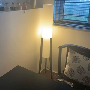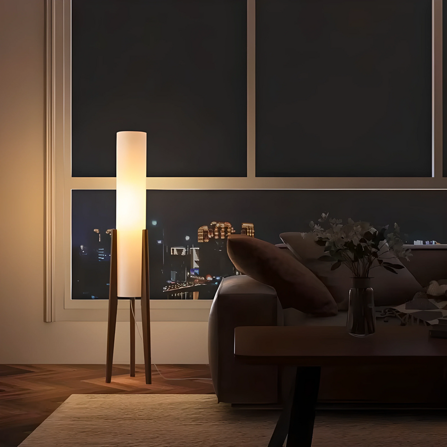 “Golvlampan Vela passar perfekt bredvid soffan."